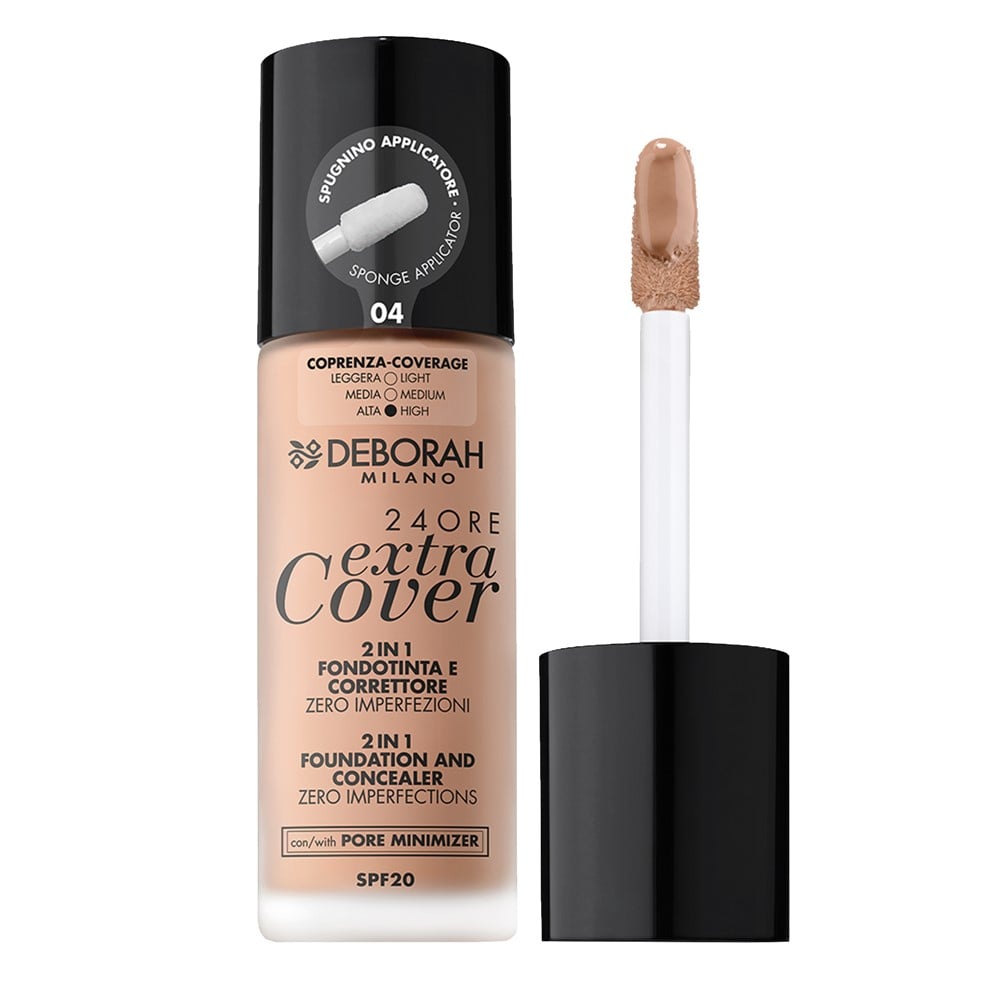 Liquid makeup foundation and makeup concealer, 04 Apricot, in beige color, equipped with a round-tipped applicator, with a dermatologically tested formula, enriched with silicone elastomers, treated pigments and wax, with sun protection factor of 20 SPF, with moisturizing, soothing and protective effect for the skin. It can be applied on the skin to create an even, uniform color to the complexion, to cover skin flaws or dark circles around the eyes, to change the natural skin tone, to reduce open pores, to absorb excess sebum from the skin or to apply on the face as a base layer for more complex cosmetics, and it has a long-lasting effect of up to 24 hours. This product is suitable for use on all skin types.