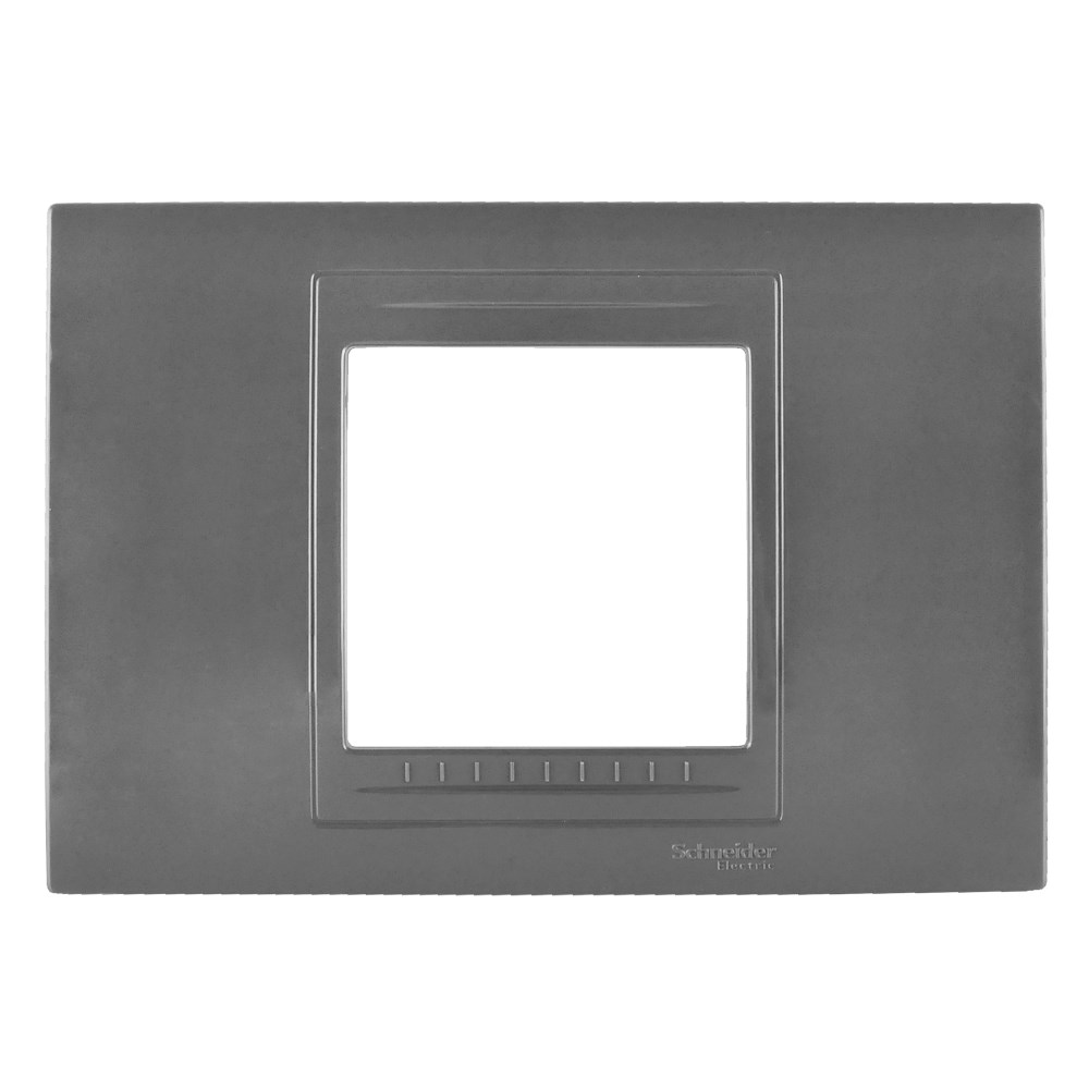 Unica Allegro cover frame from Schneider is a top quality product with aesthetical features. The grey color of the frame can be easily combined with every wall color. This cover frame is suitable for only two modules (a Shuko socket or bivalent plug plus a switch).