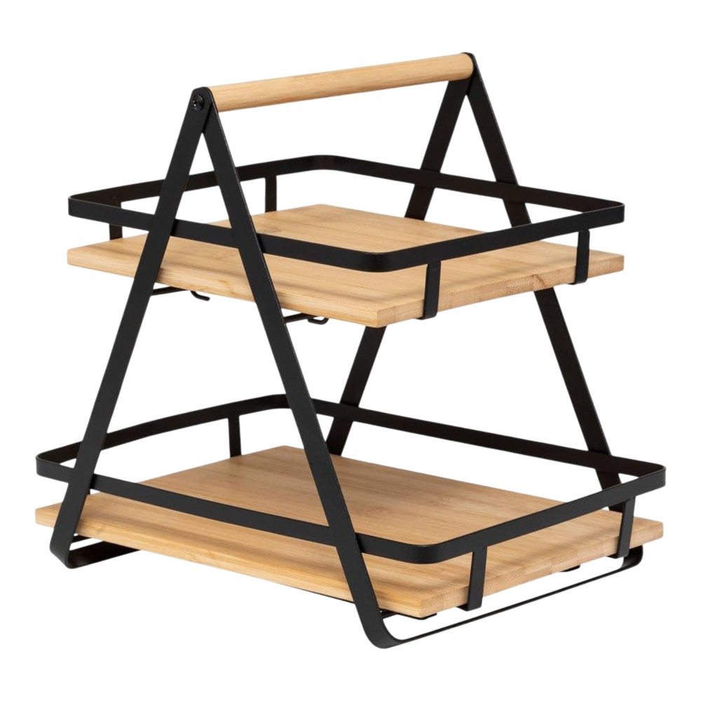 This 2-tier shelf organizer, combining durable metal and natural bamboo, offers a beautiful and practical solution to organize your space. Its modern design, with the combination of natural bamboo color and black metal, will add a touch of elegance to any environment. It offers double space for organization, helping you maximize space on your shelves. Ideal for organizing spices, cans, bottles, plates, stationery, cosmetic products, and other items. Helps keep shelves tidy and clean, preventing the accumulation of items. This 2-tier shelf organizer is an excellent choice for keeping your space organized and clean, while adding a touch of natural elegance.