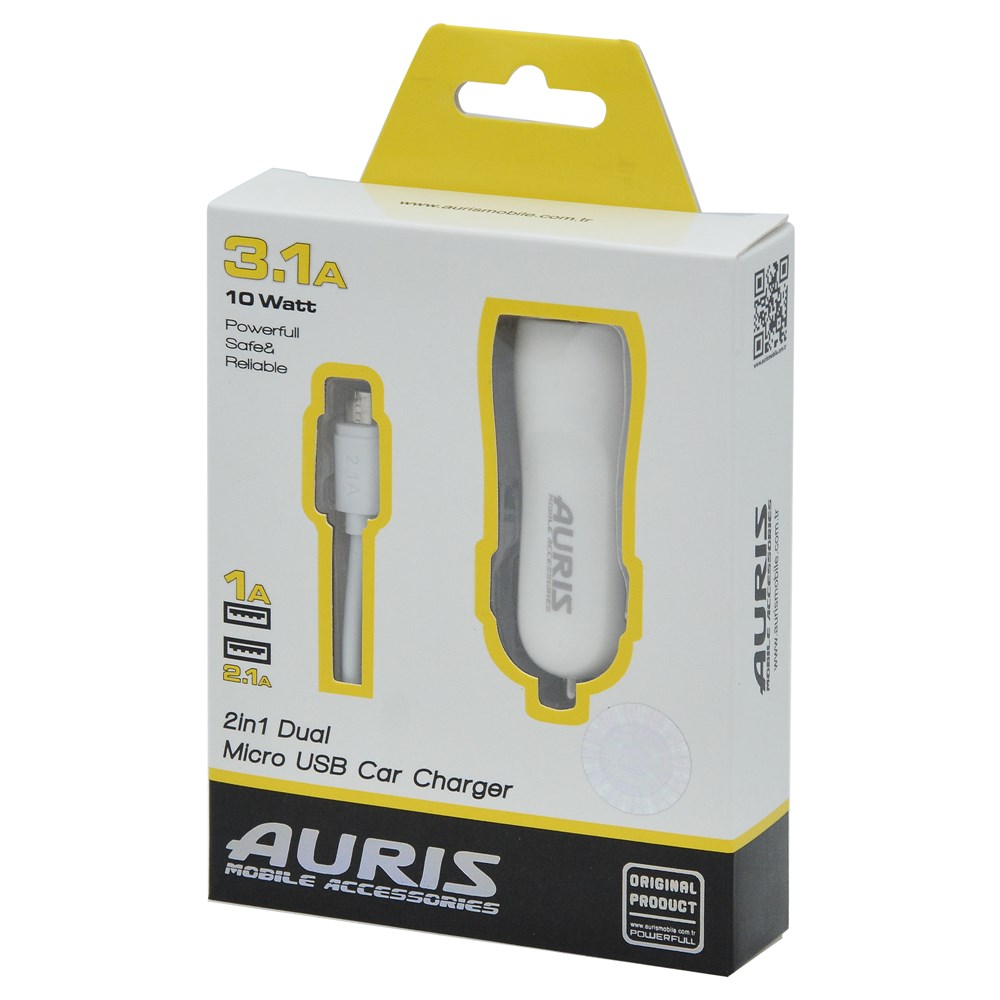 2in1 Dual micro usb car charger, 3.1A 10Watt, Auris ARS-001