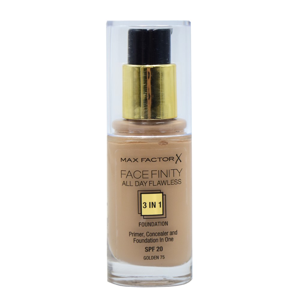 You're reviewing:3 in 1 liquid makeup foundation spray, 75 Golden, All Day Flawless, FaceFinity, Max Factor, plastic and glass, 30 ml, beige, 1 piece