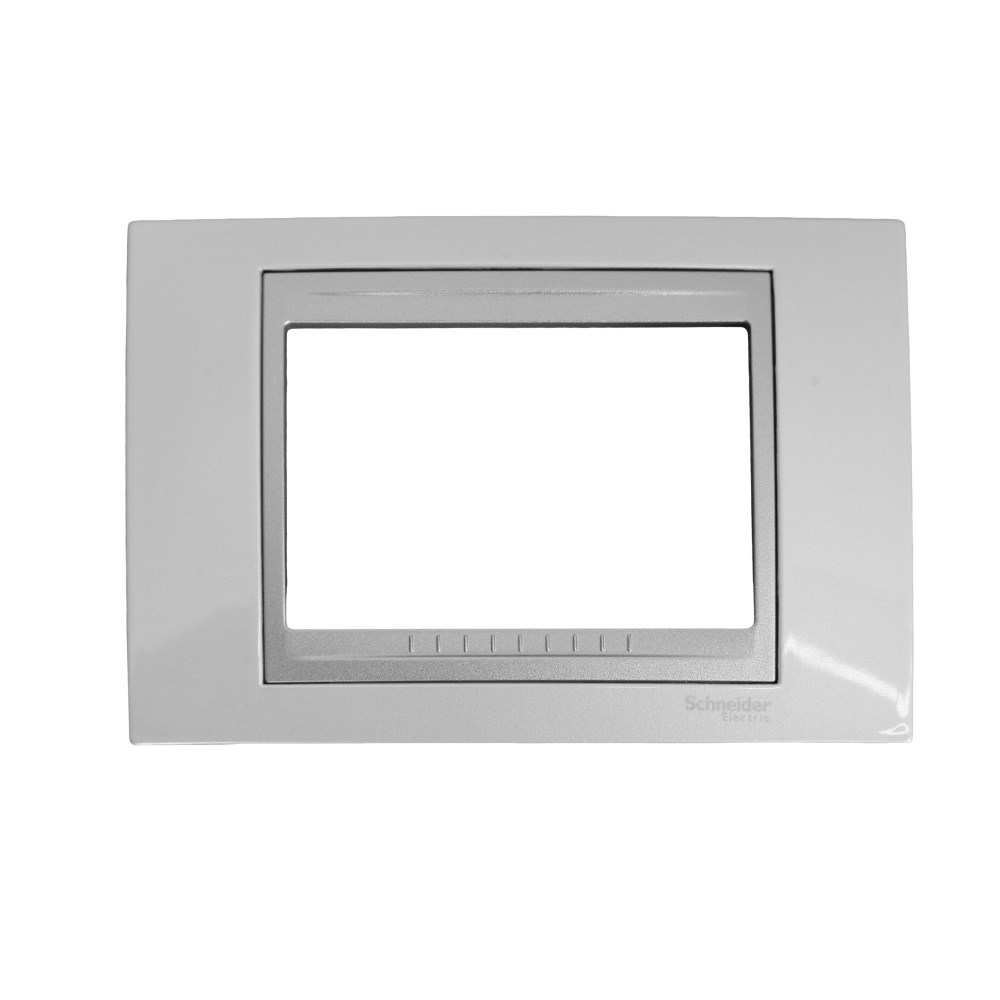 Unica Top cover frame from Schneider is a metallic top quality product with aesthetical features. The white color of the frame can be easily combined with every wall color. This cover frame is suitable for only three modules (1 Shuko socket or 1 switches plus 2 bivalent socket).