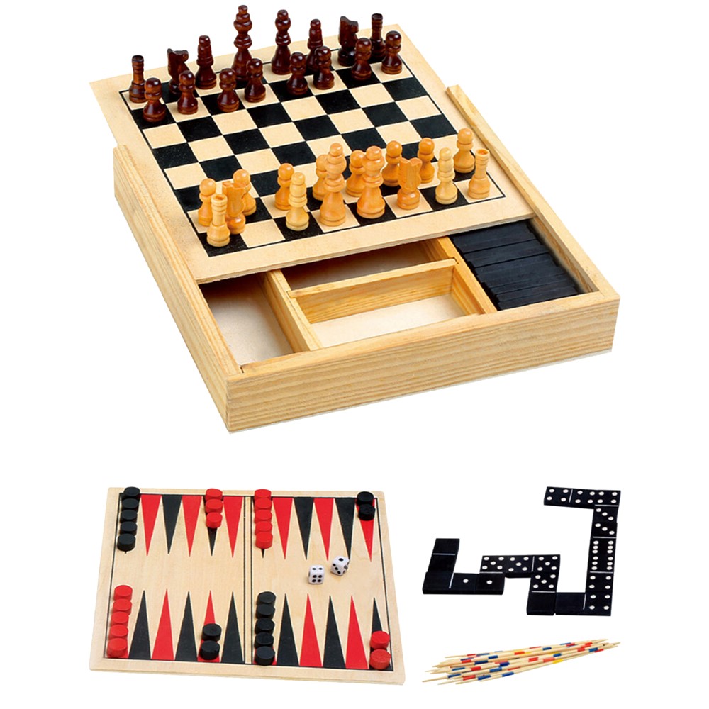 4-in-1 board game for kids, which is played by 2 or more people. The game helps to develop cognitive and analytical skills in children. The constituent material and paint have no content that can be toxic or harmful to children and are certified for safety in use. This product is suitable for use by children over 4 years old.