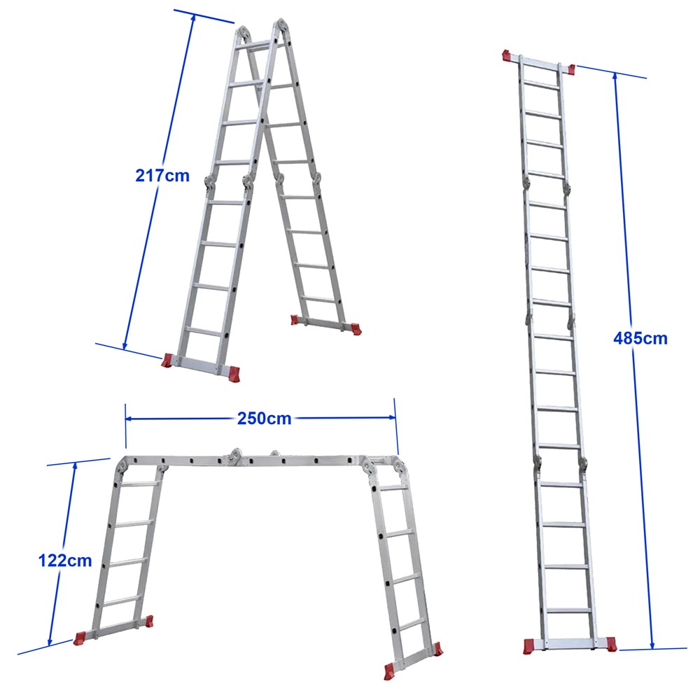 The multi-functional Stairs can be used in different working positions. The rubber feet are extremely strong, ergonomic and non-slip for the best adhesion to the ground. The material of the hinges is galvanized steel with three steel plates