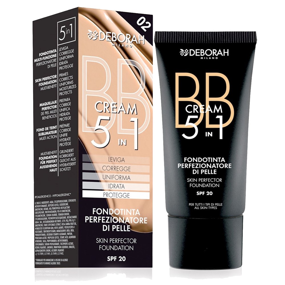 5 in 1 skin perfector makeup foundation, 02 Beige, in beige color, with a dermatologically tested formula, with a sun protection factor of 20 SPF. It is used: