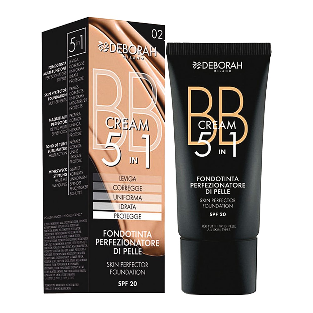 5 in 1 skin perfector makeup foundation, 03 Sand, in beige color, with a dermatologically tested formula, with a sun protection factor of 20 SPF. It is used: