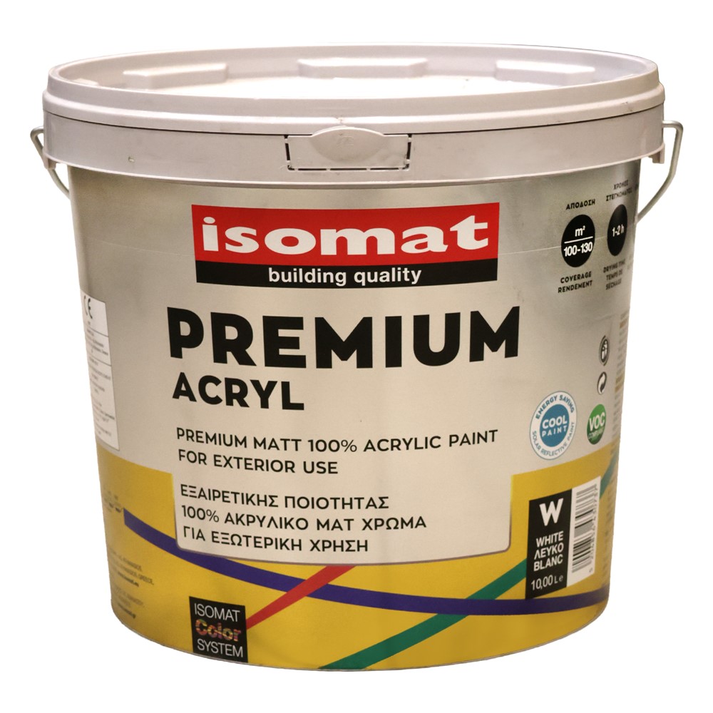 Premium, acrylic emulsion paint for exterior use. Characterized by high water-repellency, excellent surface coverage and durability in harsh weather conditions and ageing. It is also vapor permeable allowing the building to breathe. Provides strong adhesion to any kind of old or new substrate like render, concrete, wood etc. It has excellent workability and dries quickly. Offers an excellent matte finish. Certified as cool paint. Before using, stir the content lightly and applyas is or thinned 5-10% with clean water.