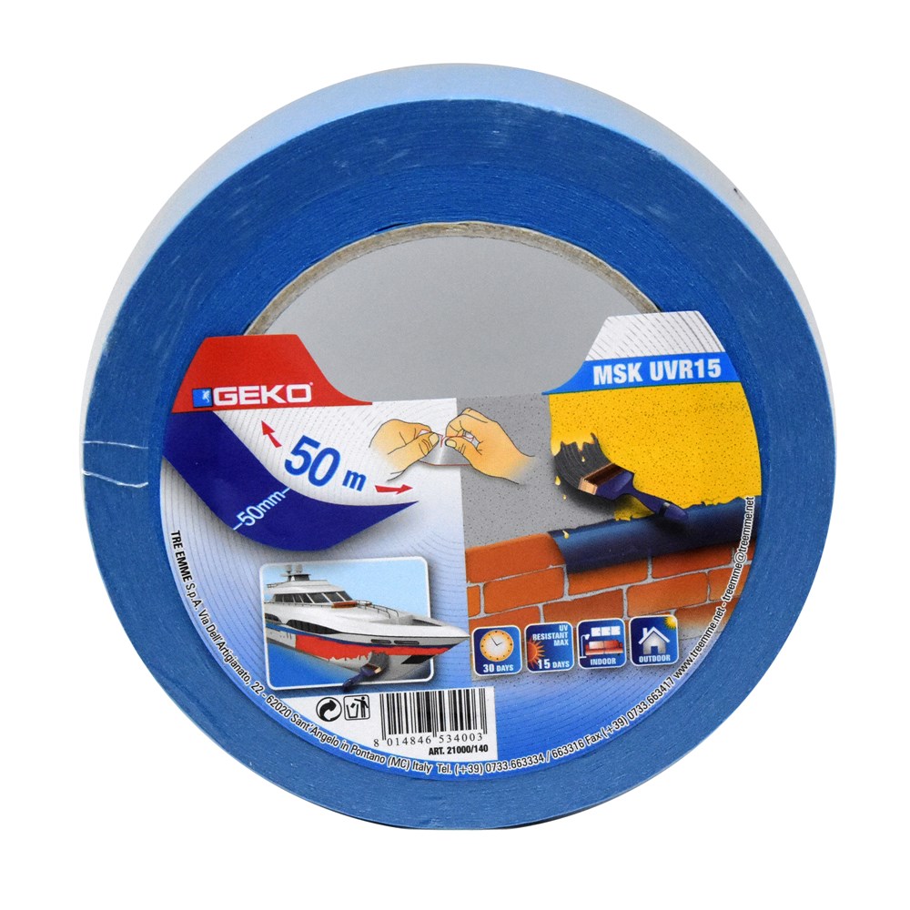 Adhesive masking tape, Geko, MSK UVR 15, 50 mm x 50 m, blue