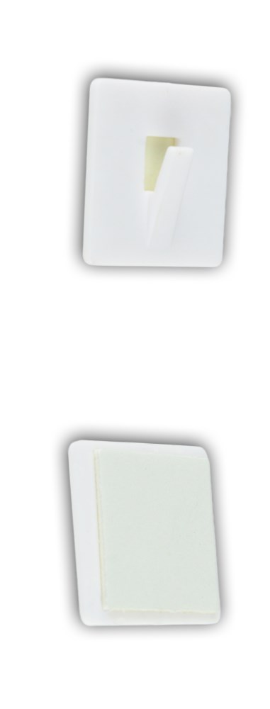Ideal for hanging small pictures or objects. Surfaces: For use on glass, tile, Formica and finished wood surfaces. Material: ABS, Instructions: 1- Separate hooks by flexing at the joint. 2- Clean surface and leave to dry thoroughly 3- Peel the backing off the hook. 4- PLace the hook carefully on the desired spot and press firmly against the surface 5- Leave the adhesive to set for 12 hours before hanging anything on the hook