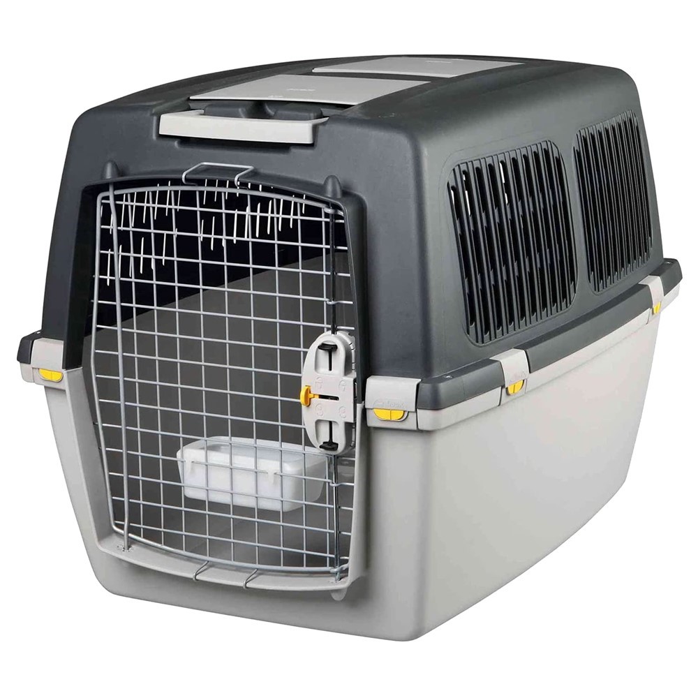 Produced according to the highest industrial standards. Enables the transport of animals in all means of transport (airplane, train, plane, bus, etc.), based on IATA regulations. The sturdy structure, metal gates and fuses present in the mounting elements, provide the maximum level of safety during the trip. The space is enough for free movement of animals with medium body. The water bowl allows the cooling and provision of the vital element even in long-haul flights. The attractive handle makes transportation to the airport, port and terminal easier. Ideal for the comfortable transportation of your loyal friend.