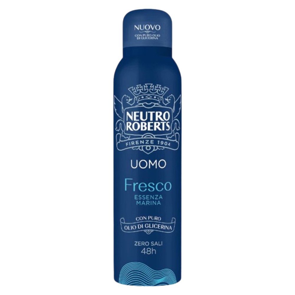 Thanks to a formula with zero aluminum salts and zero stains, Neutro Roberts Fresh Marine Essence deodorant for men guarantees effective deodorant protection without interfering with the skin's natural sweating process. Moreover, thanks to the addition of pure glycerin oil, it restores the skin's natural hydration, protecting it every day. Effective for 48 hours.
