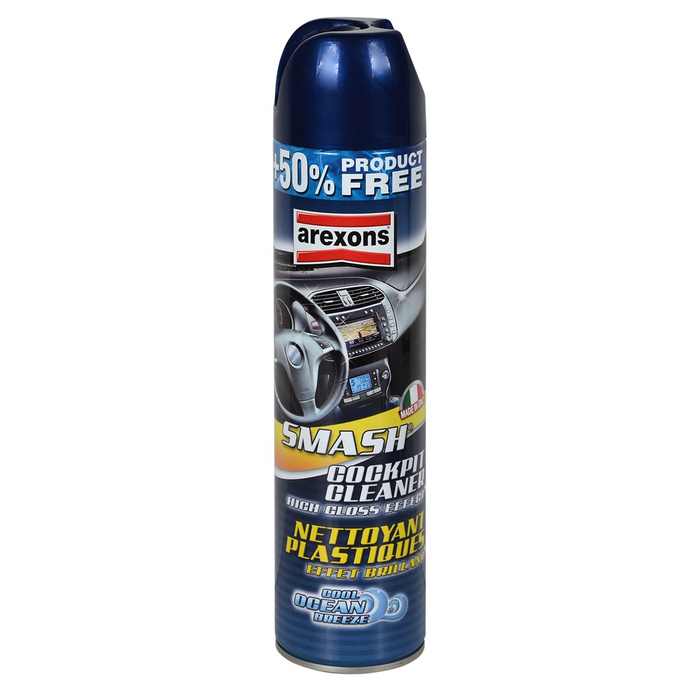 Smash Arexons Smash High Gloss cleans, polishes and protects dashboards and any plastic, leather, imitation leather, rubber, walnut and wooden surface in the car. Its exclusive neutralising formula cleans the treated surface thoroughly, cleansing it and removing dust and allergens held onto the cloth and eliminating the smell of smoke
