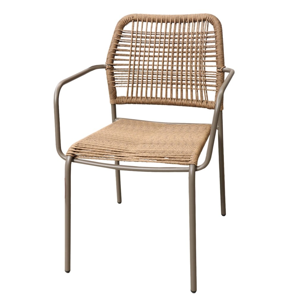 Made of solid metal structure, painted with the "electrostatic" painting method. Synthetic rattan weave, resistant to UV degradation and weather conditions. The high density of synthetic rattan threads, allow sports weight up to 120 kg. Armrests create comfort during use. Ideal for use in your garden or balcony. Thanks to its high resistance to multiple uses, this chair is also recommended for Professional "HORECA" uses. The possibility of stacking made storage easy, as the chairs can be easily placed one on top of the other.