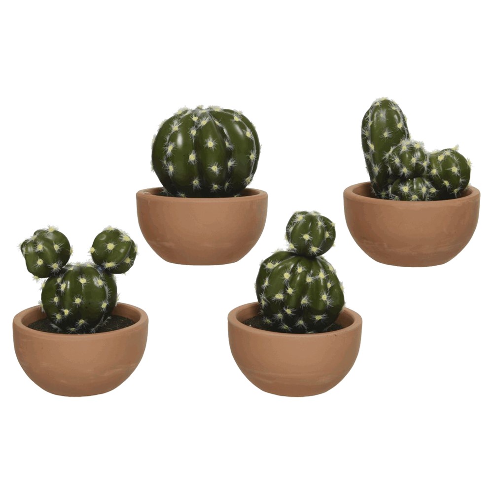 Artificial flower, cactus, in pot, plastic, green, Ø9 xH10.5 cm
