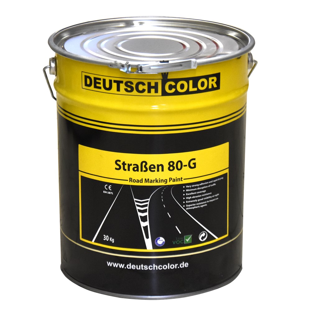 Straben 80 - G is a special solvent-based acrylic resin paint. It is used in road signs, to paint the lines of the main roads and is used in various parking lots and large warehouses which have a distinctive signage. It has a fast drying and high durability against atmospheric conditions