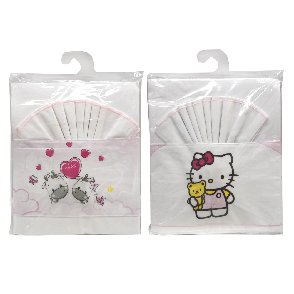Baby bed sheets set, with prints, cotton, 1x(170x120)+1x(120x60)+1x(58x38) cm, white and pink, 3 pieces