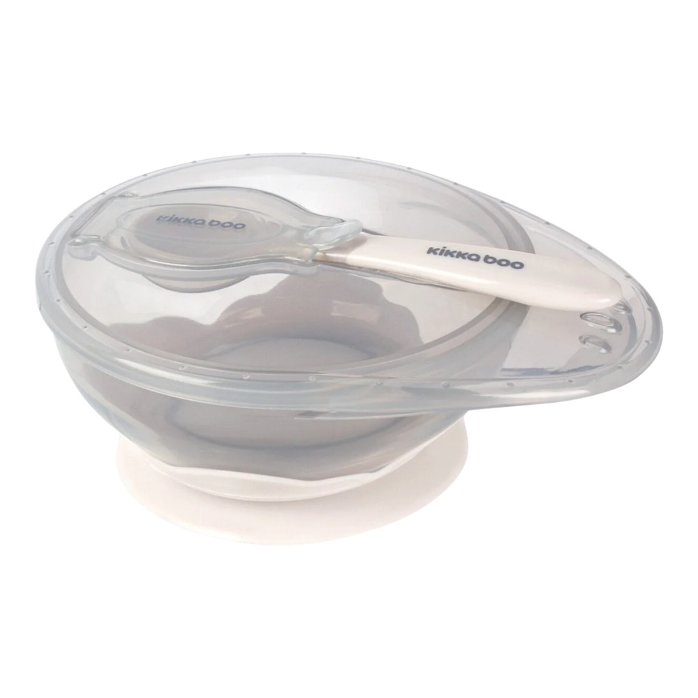 Practical and safe baby feeding set, including a bowl and spoon from Kikka Boo, suitable for babies over 4 months. Made from high-quality, BPA-free silicone, this set is gentle on sensitive teeth and safe for everyday use. The bowl has a non-slip base to prevent slipping and spilling, while the spoon is ergonomic and easy for little hands to hold.