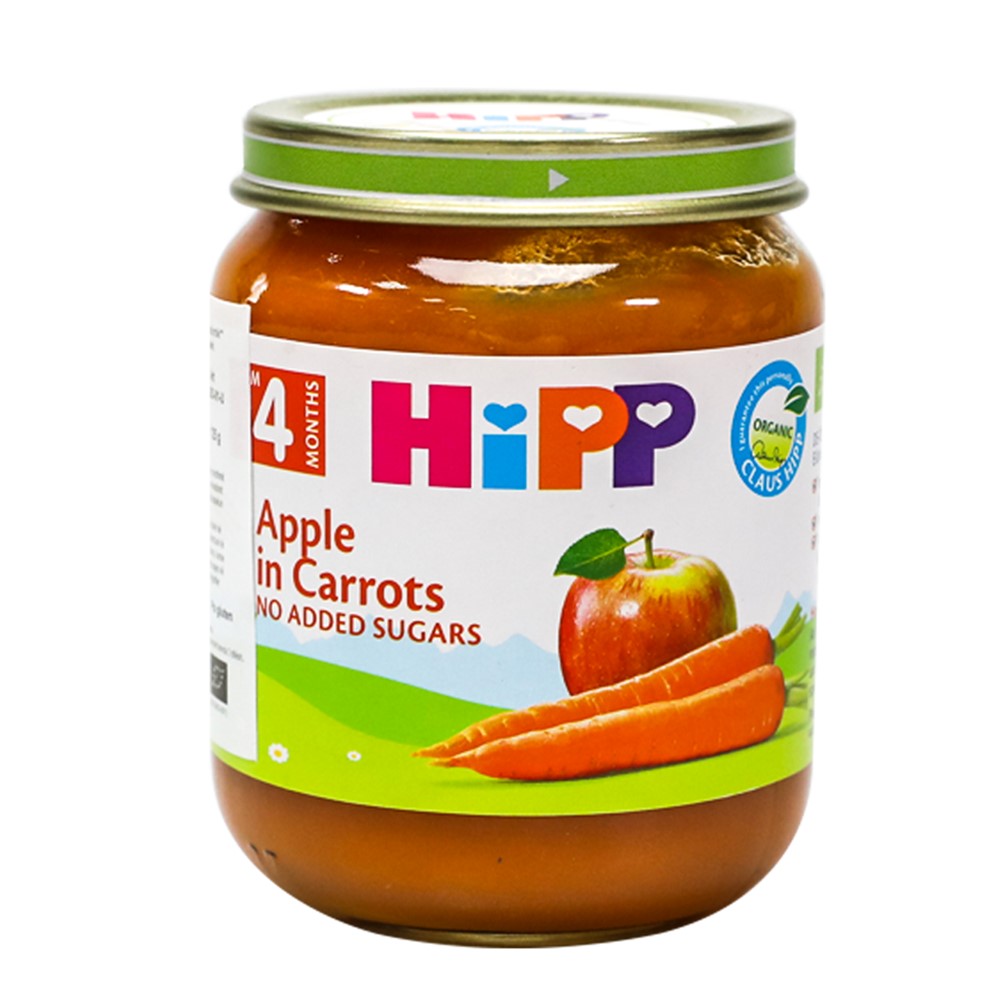 Fine mixed baby food, with apple and carrots, with a content enriched with nutritional values that are necessary for the normal and healthy development of the child. This food can be easily consumed by babies, thanks to the well-ground formula. How to use: To be consumed as a supplementary food or as a dessert. After opening, store in the refrigerator for a period of up to 3 days. It is recommended to use plastic spoons. Caution: Pay attention to the safety of the jar, it must be undamaged and unopened, with hermetically sealed lid in vacuum. Free of gluten, added sugar, preservatives, flavorings, coloring agents or artificial coagulants. This product is suitable for use in children over 4 months of age.