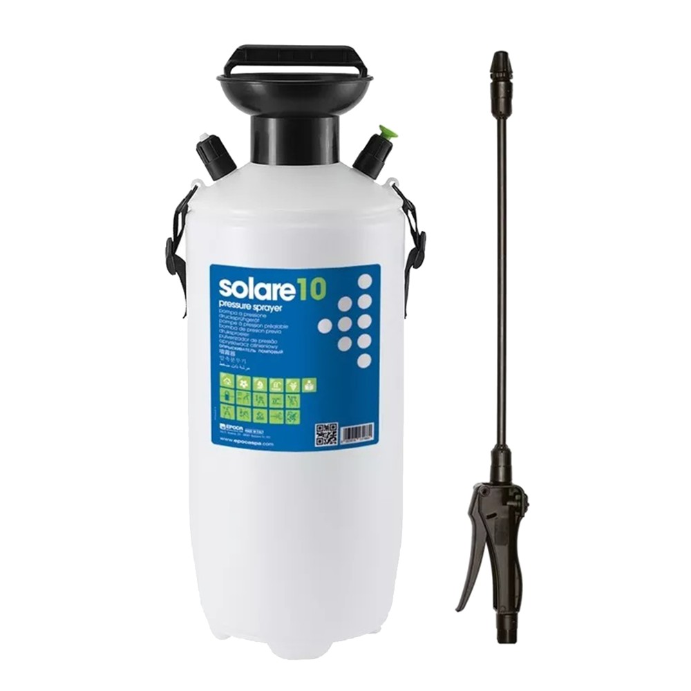 The Solare backpack sprayer is an excellent tool for use in gardening, agriculture, and plant protection. With a capacity of 10 liters, this manual pump is ideal for spraying pesticides, insecticides, or fertilizers. It has a maximum pressure of 3 Bar, which ensures an efficient and even distribution of liquids on your plants. For any gardener, farmer, or amateur user looking for a reliable and simple tool for spraying plants, the Solare 10L pump is the ideal solution.