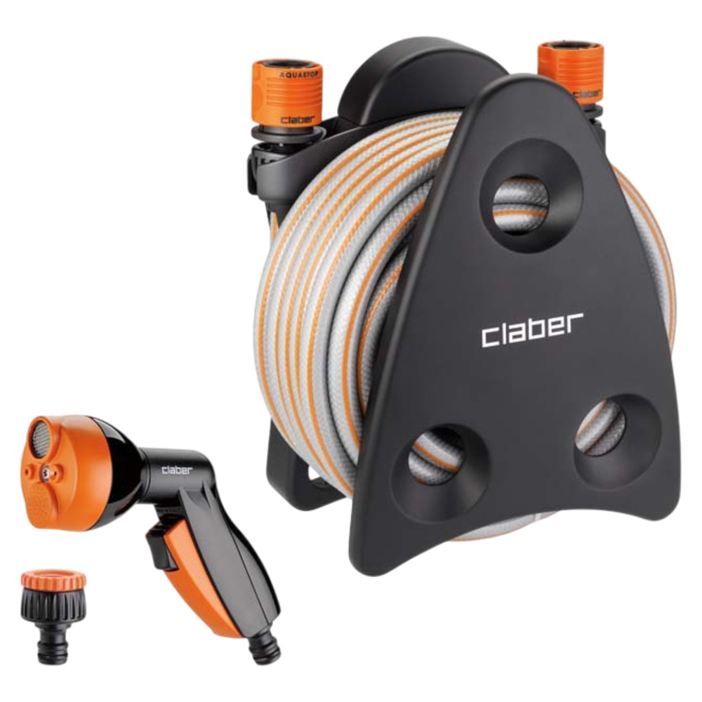 Claber balcony irrigation set is a ready-to-use set. Equipped with a retractable handle for easy transport and installation. The set includes: 10 meters of pipe Ø 9-13 mm, 3/4” (20-27 mm) coupling, 1/2” (15-21 mm) reduction, 2 automatic couplings and 1 multifunctional sprinkler head. Can be mounted on the wall.