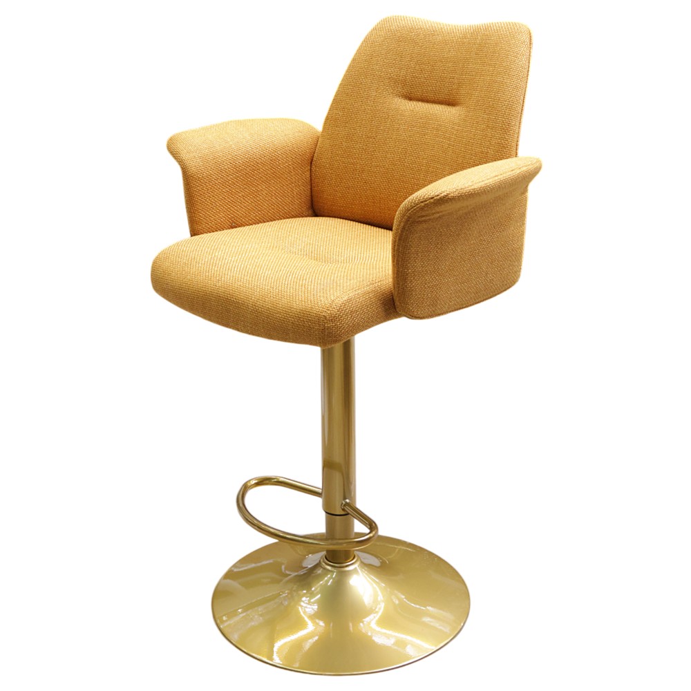 The bar stool "Thomasia" is a refined and sophisticated product, which will add a special touch of elegance to your environment. With a detailed design and the use of high-quality materials, this bench offers a wonderful experience of durability and comfort. The textile upholstery is carefully selected to ensure a soft and comfortable feel for the wearer. The yellow color of the upholstery gives the bench a refined and modernized look, which fits the style of many different decorations and environments. The metal structure of the stool provides stability and secure support for the user.
