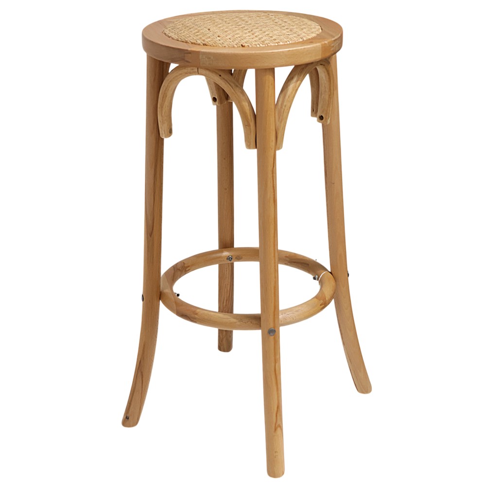 Bar stool, beech wood, rattan seat, natural, 36x36x71cm