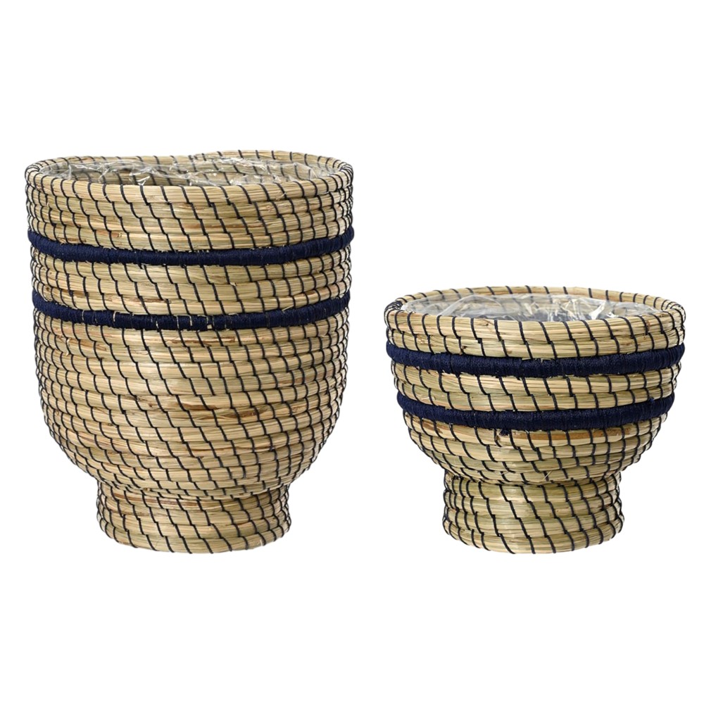 Basket for flowers, set 2 pieces, seagrass, natural/black