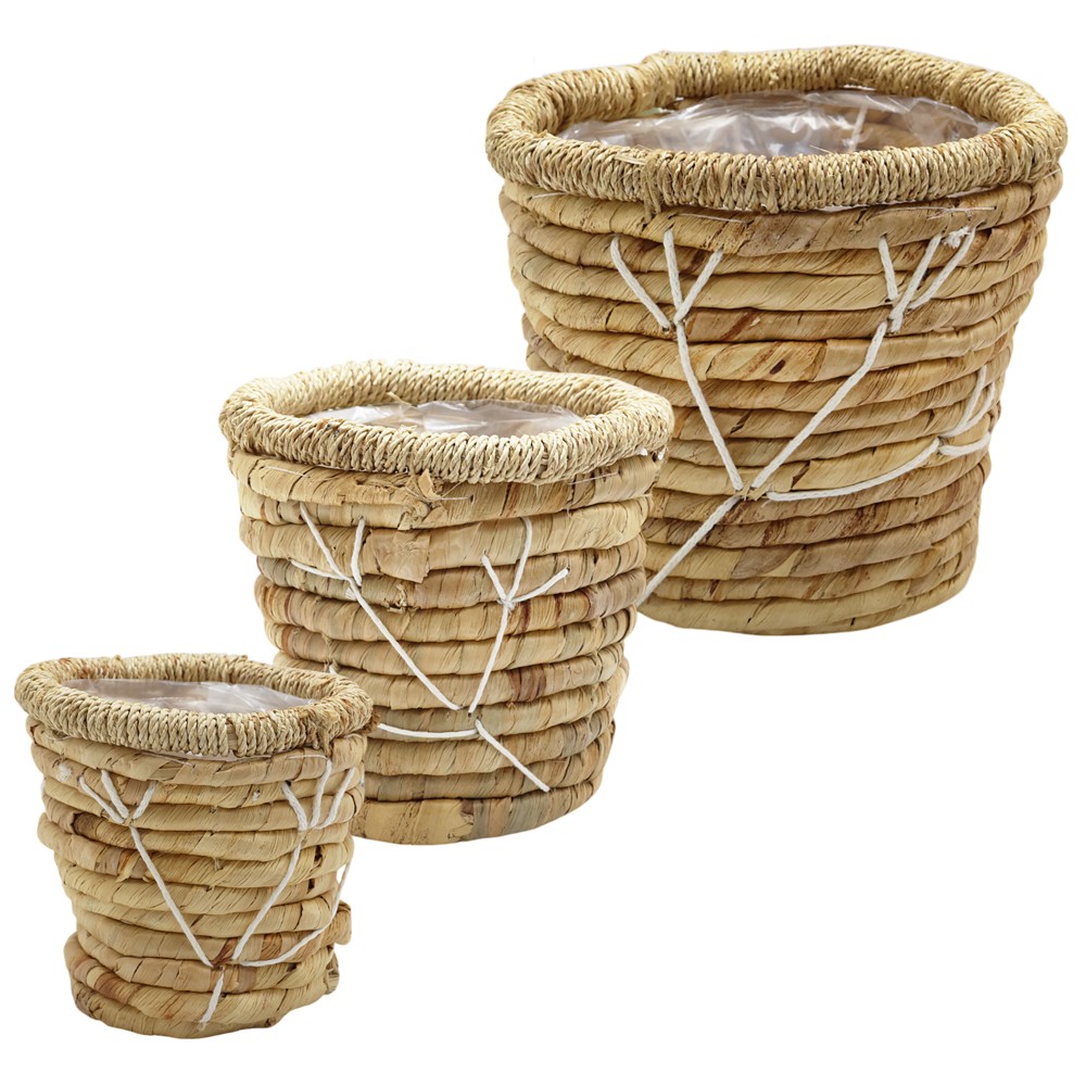 Basket for flowers, set 3 pieces, seagrass, natural