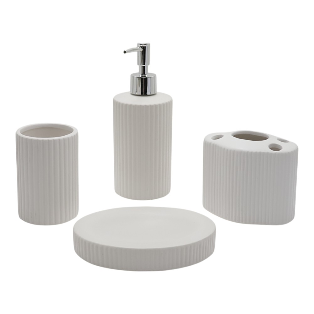 Set includes: Soap dispenser, 2 x Toothbrush holder, Soap holder