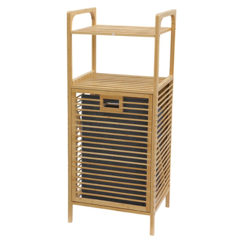 The "Noshiro" toilet furniture with built-in laundry basket is built with a bamboo wood structure in natural color. Bamboo wood grows in high humidity conditions making it very resistant to bathroom steam. Equipped with 2 levels to place your items as well as an integrated laundry basket. The handles on the top can be used both to place towels and to move the furniture in a simple way. Dimensions, height 90 cm x length 40 cm x width 33 cm.