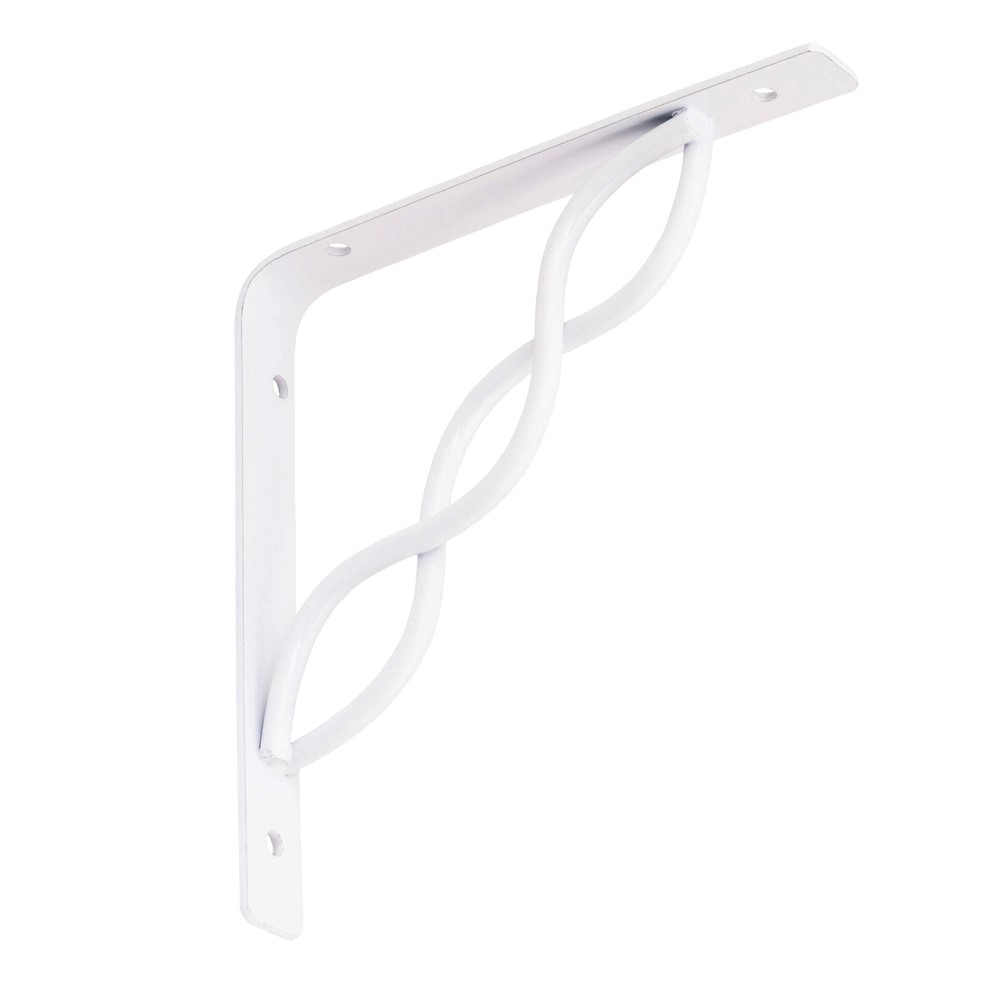 Shelf bracket with interlaced rod, made of sturdy steel material, in white color, with dimensions of 15x15 cm, which serves as a decorative and functional accessory for various environments. The constituent material is resistant to use, heavy weights, rust or abrasion. It is used for wall mounting of self-supporting shelves, but it can also find other applications in professional and non-professional environments.