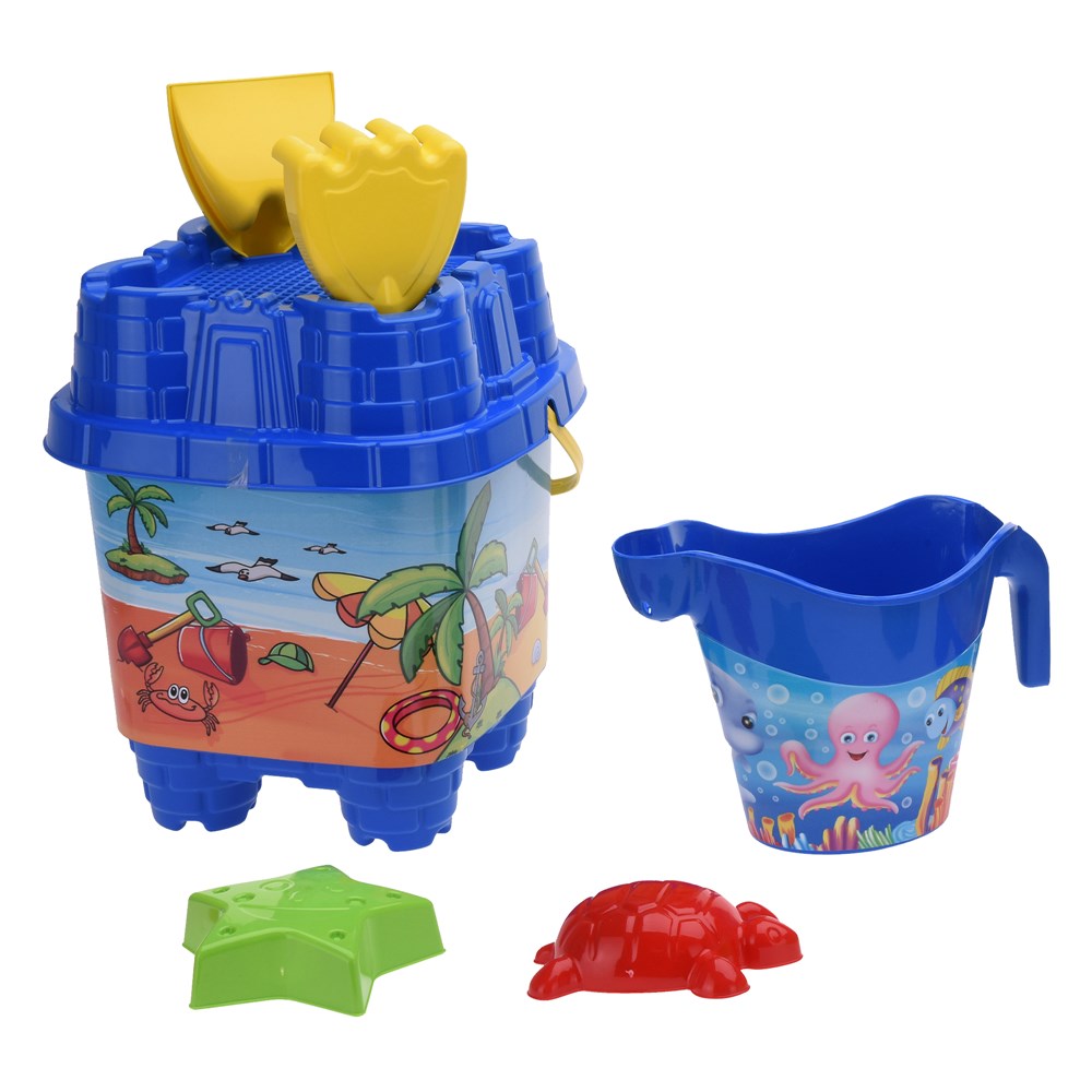 Encourage your child's imagination while enjoying the happy moments by the sea. The beach bathing set with the bucket and its accessories will be your favorite game for your child, accompanying them in every moment of fun, even on the hottest days of the year.