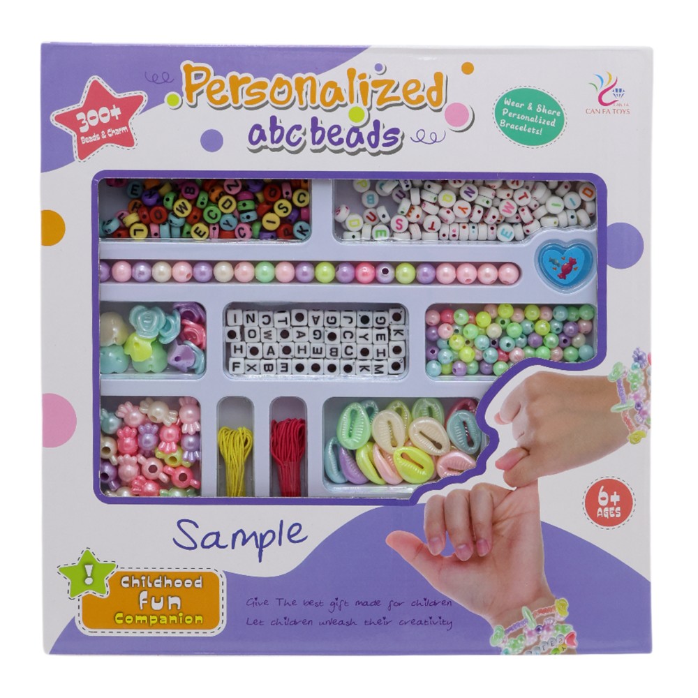 Personalized ABC Beads, a colorful collection of beads with different letters and shapes, perfect for creating unique jewelry and personalized accessories. This set includes mixed beads that allow for endless combinations, giving children the opportunity to create original names, words, messages or designs.