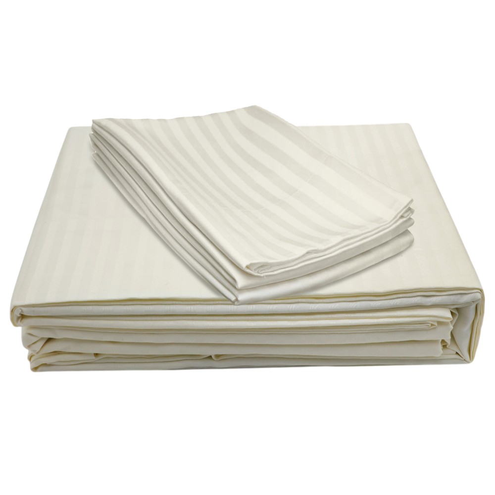 Bedlinen set, double, saten, 80% cotton/20% polyester, with stripe 7mm, panna, 250x300 cm (without elastic); 250x300 cm; 50x80 cm (x2)