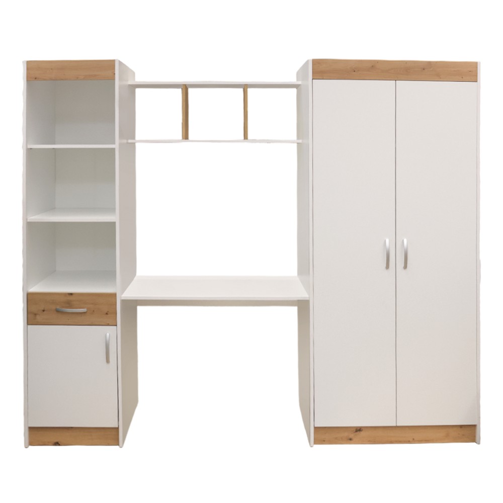Simple, elegant, functional, practical, these are the words that best define the furniture choices. The bedroom is made with quality materials and finishing and blends a modern and elegant look with economical prices. This room consists of 1 wardrobe, 1 study table and a side shelf for placing books or various decorations.