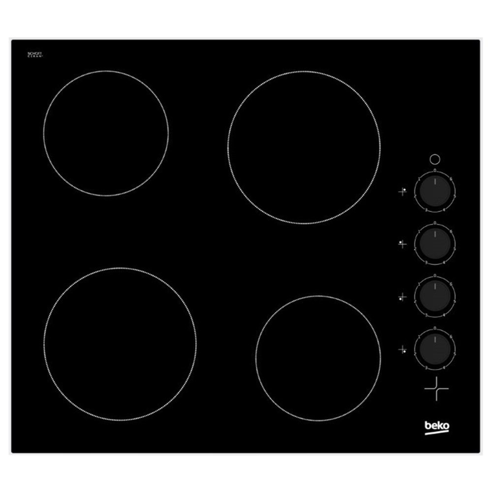 Independe plate vitro Beko 4 zones, electronic programmer, 9 power levels, safety lock, calorresidual- indicator - left front 190 mm - 1800 kW - traseraizquierda 155 mm - total power kw 6 kw