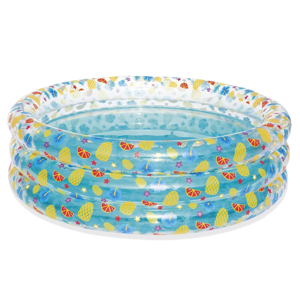 The Bestway® Tropical Paddling Pool is an inflatable children's pool designed for families who can now enjoy the tropics all year round. The portable pool features fruits, flowers and other motifs from tropical paradises, making you feel like you're on vacation. Get the Bestway Tropical paddling pool and create your own water paradise this summer.