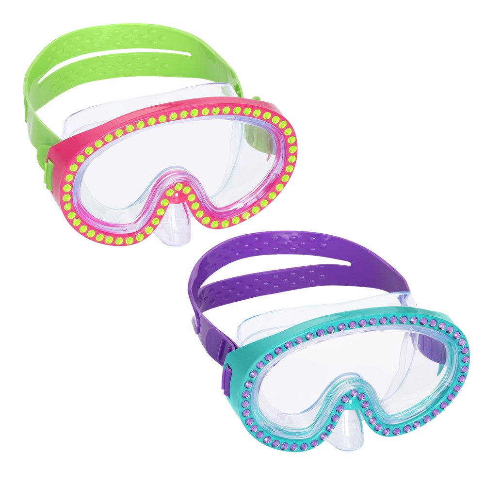 The Hydro-Swim™ Kids Sparkle 'n Shine Mask is the perfect sparkling new companion for a day in the water. Its sparkling rhinestones are eye-catching and kids can use them to show off their fun personality. The lenses are made of durable polycarbonate with a UV protective coating that keeps the sun's harmful rays out of your eyes.Comfortable Fit: For a snug and comfortable fit, the two-part headband is fully adjustable and the double edge seals reliably protect against water ingress.Go today swim with the Children's Hydro-Swim™ Sparkle 'n Shine Mask!"