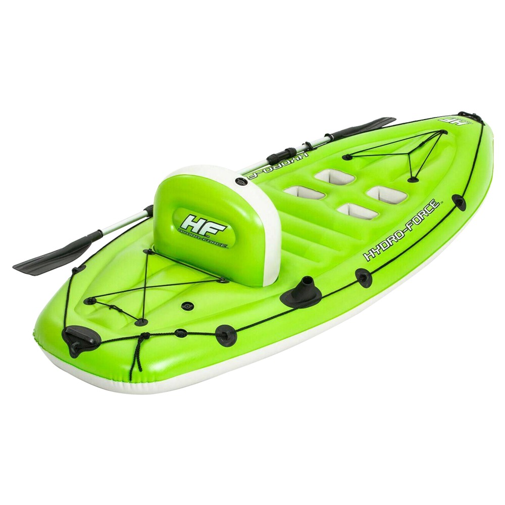 Nothing beats relaxing on the water and fishing all day long. This is easily possible with the comfortable, practical Hydro-Force™ fishing kayak Koracle. In addition to the integrated holder for the fishing rod and oar itself, the kayak has an inflatable backrest, which invites you to relax completely. The Koracle is not only comfortable, but also extremely versatile. Features include 4 footrests for users of different heights. A kayak can't be more practical than the Koracle. Assembly and disassembly is equally easy. Thanks to the removable fin, the kayak can also be easily stored. Also included is an Air Hammer™ hand pump, paddle and repair patch.