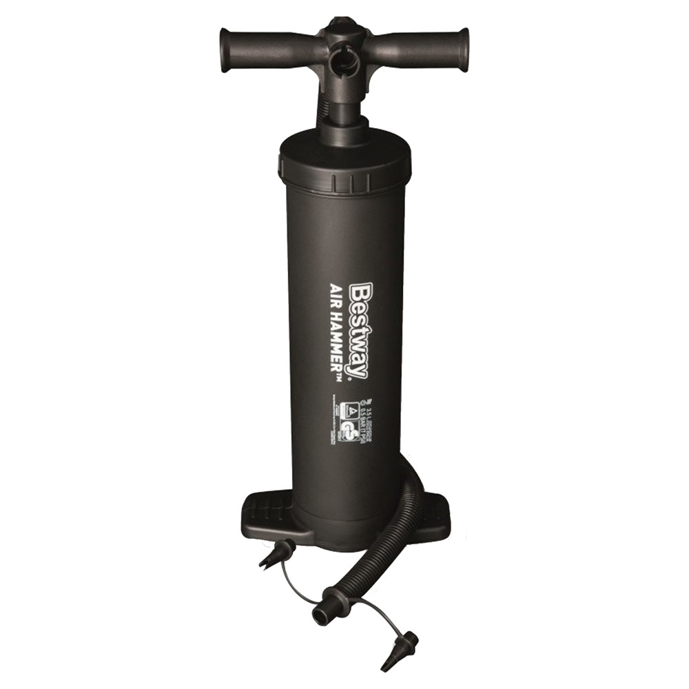 The 48 cm Air Hammer™ hand pump from Bestway® reliably fills and deflates a wide variety of inflatable items. From swimming rings, air beds, inflatable boats, toys to many more, there are no limits. In order to achieve maximum air supply, the pump does its work during both the up and down movements. It can be easily switched between pumping up and pumping down. The product is characterized by its robust design and is also equipped with three universal valve attachments.