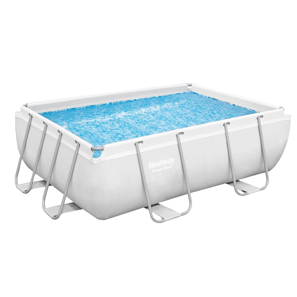 Removable above-ground Power Steel™ pool, in a rectangular shape, made of synthetic Tritech™ material, composed by a triplate polyvinyl chloride (PVC) layer, covered with 2 layers of vinyl PVC at the ends and reinforced with a layer of polypropylene industrially welded on the inside, which makes it more durable and puncture-resistant. The tubular support structure is equipped with a Seal & Lock™ assembling system, for a solid and secure pipe connection, with a constituent material made of galvanized steel, which has anti-rust properties and it is resistant against the corrosion caused as a result of the chemical and electro-chemical agents' action on the metallic surface. The pool has dimensions of 261/282x172/196x84 cm, a water capacity of 3662 liters, and support structure dimensions of 261/323x172/229x84 cm. It can be assembled and dismantled easily in only 20 minutes. The set also contains: