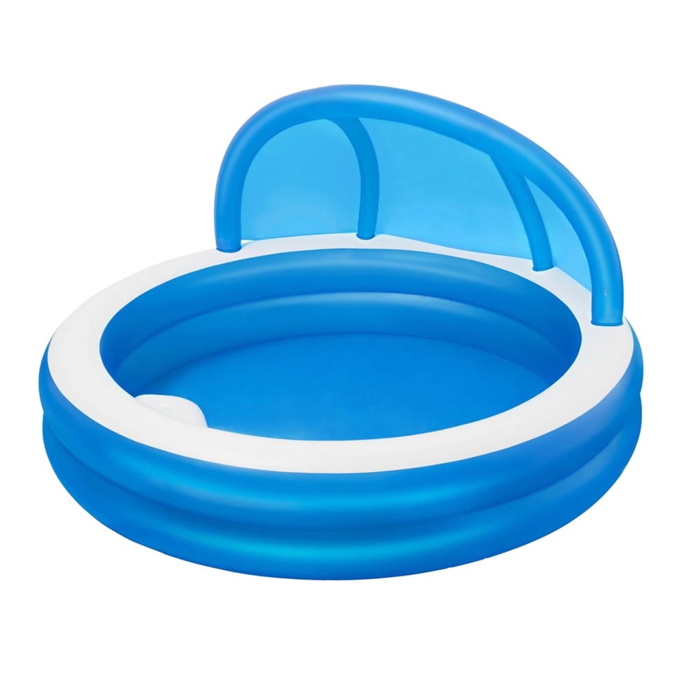 The spacious Bestway® Family Pool Summer Days offers safe fun for the whole family! Sit back and enjoy the outdoors under the giant UV Careful™ canopy, which shades part of the pool, keeps harmful rays out and keeps you cool. With the comfortable built-in bench, this pool becomes the perfect place to enjoy while the kids splash and play in the water. The inflatable pool can be set up in just a few minutes and has a quick valve to drain the water, which means that dismantling and storage are quick and easy. Transform your garden into an oasis for the whole family every summer with the Bestway® Family Pool Summer Days!