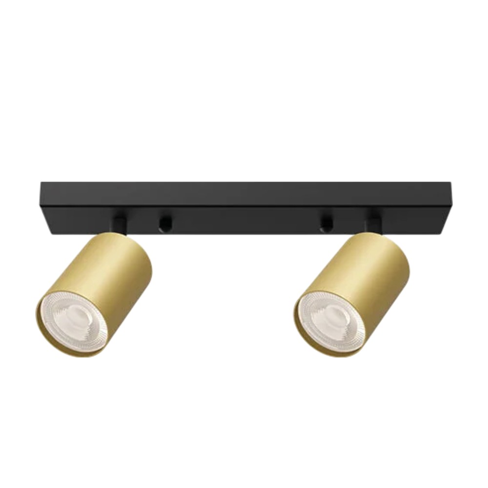 Beta luminaire by Braytron with 2 GU10 bases. Gold-colored aluminum body. Dimensions 6x12x30 cm. Modern and functional design, ideal for focused lighting in various environments.