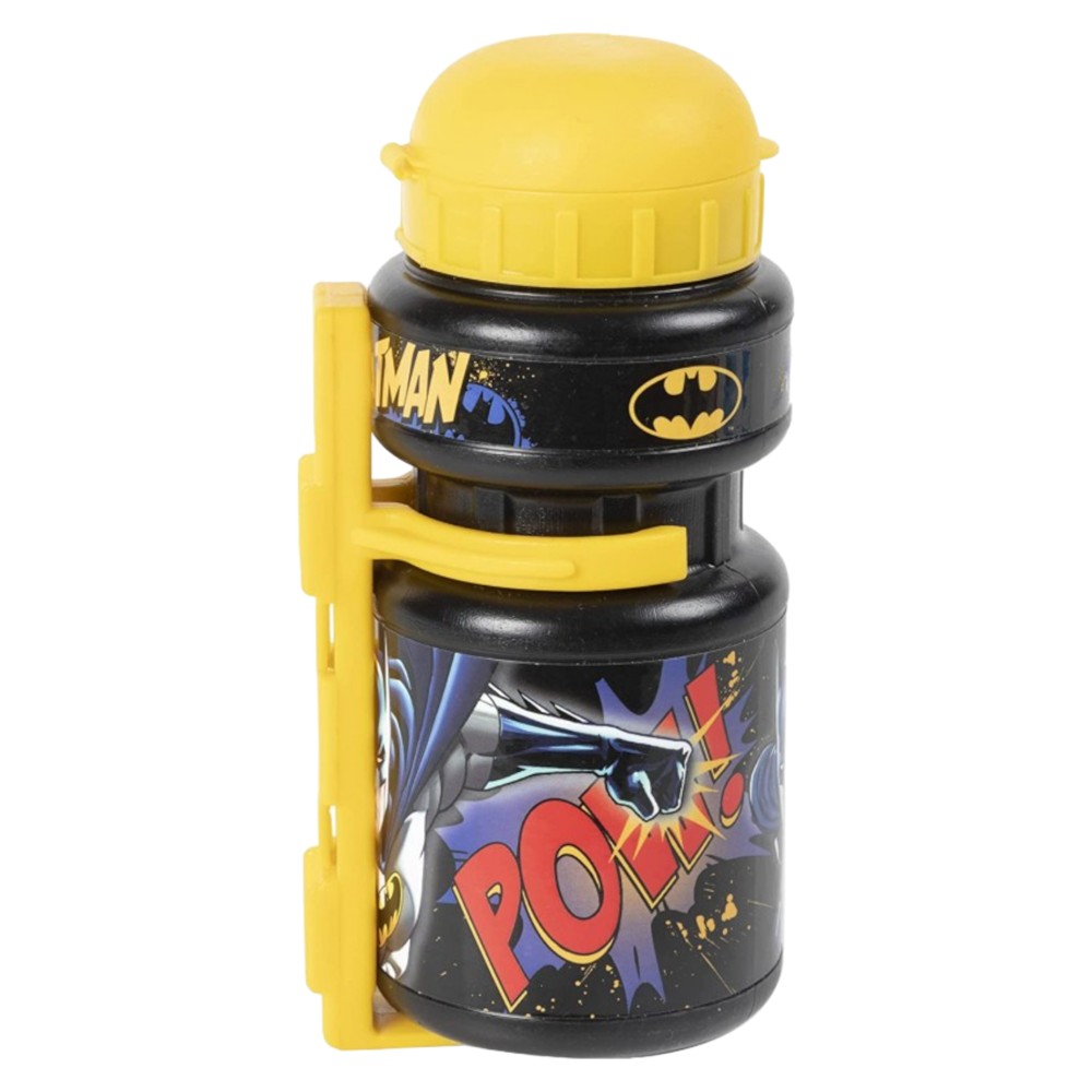 Water bottle for children's bicycles. With a capacity of 350 ml and designed with the famous character of the Batman movies, it is an accessory that should not be missed. Its shape and construction make the latter a universal model and very easy to mount on any children's bicycle.