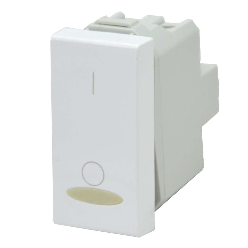 This Vimar switch is a high quality product. It can be used to command various devices (appliances or lighting). This switch is been produced to work in network voltage (220V) and 16A amperage. The white color can be easily combined with every cover color.