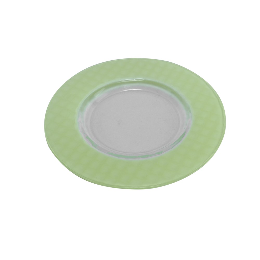 Adequately serving the sweets and give your proper atmosphere, the importance of detail festive playful grace of your days be scored through the set of four dishes "Bisanzio". The decor in the same material to the plate, the light green color outlining the perimeter borders circular shape of this dish. Full material of transparent glass full and varied combinations allows you to coverings or decorative napkins, different colors or shades to create so of a harmonious combination of aesthetic in your tables.