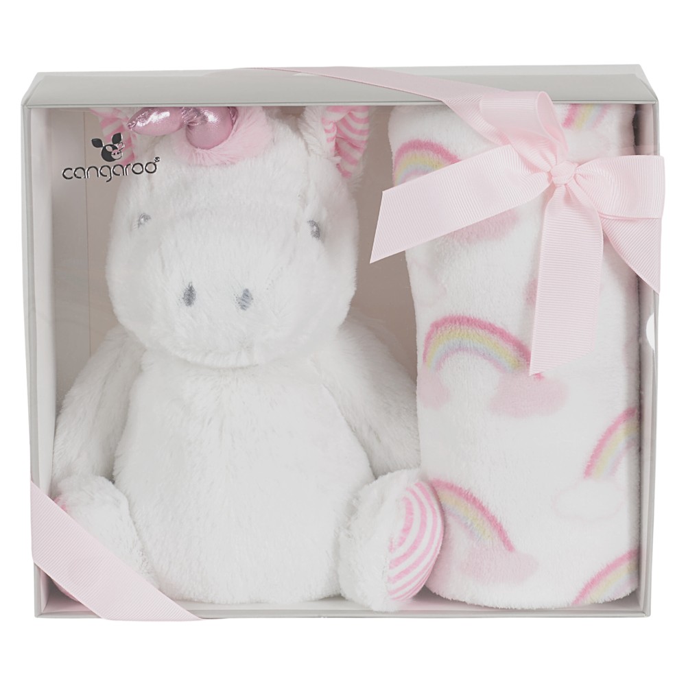 You're reviewing:Blanket set + bear, Cangaroo, Unicorn rainbow, pink, 90x75 cm, 1 pack