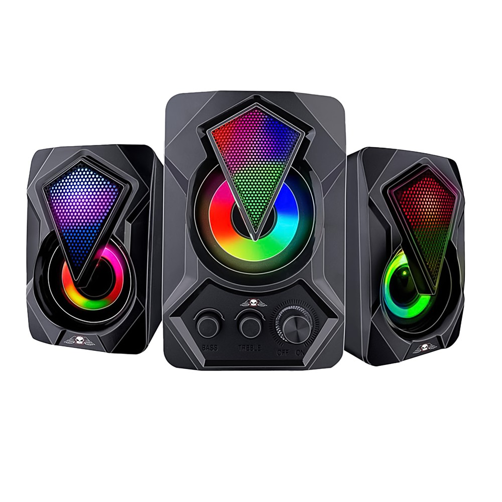 Luminous speakers, a real asset to your desk is this speaker set from No Fear! This speaker set can be connected to any device that supports Bluetooth, or connected with a cable via AUX. The USB speakers are ideal for use as a speaker set for the PC, for example while gaming. The speakers emit light in different colors and the bass, treble and total volume can be adjusted on the speaker. Input power: USB power supply (5V, 1000 mA). Connection: By AUX or Bluetooth