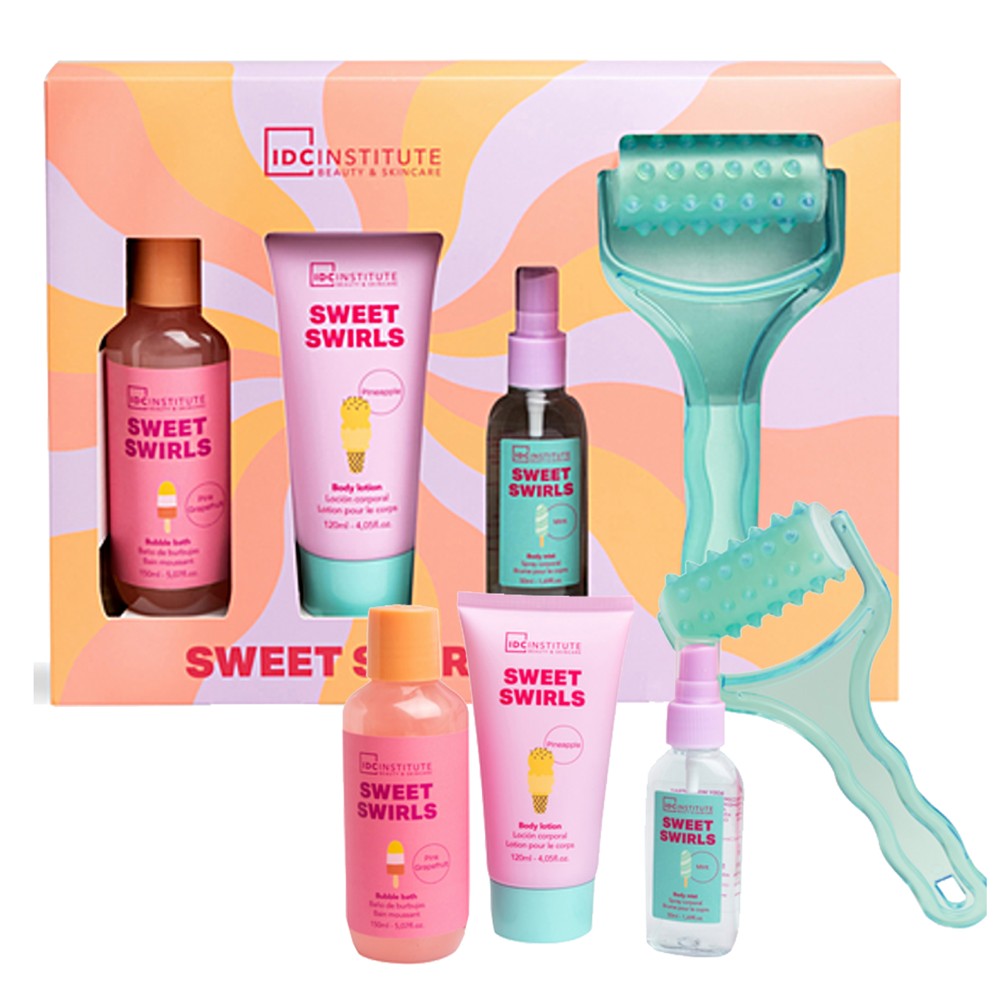Body care set, IDC, Sweet Swirls, Bubble bath 150 ml, body lotion 120 ml, body spray 50 ml, massage roller, 1 pack
