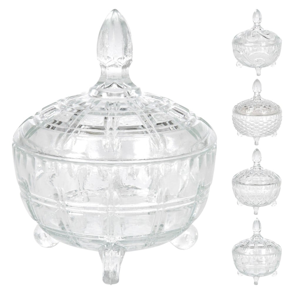 This elegant glass bonbonniere is ideal for storing and serving bonbons, sweets or anything else you want to display beautifully. With a diameter of 10 cm and a height of 12.5 cm, it has a clean and sophisticated design that makes it suitable for any table, decor or special event. The transparent glass offers a clean and bright look, making this bonbonniere a perfect accessory for any setting, adding a touch of elegance and style.